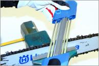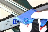 OREGON bietet seit kurzem ein Schärfsystem zum Anbau an die Führungsschiene an. Bei einer stumpfen Kette wird einfach der Powersharp-Aufsatz auf die Schienenspitze montiert. Anschließend lässt man die Sägenkette 4-5 Sekunden mit Vollgas durch das Gerät laufen. Nach der Demontage ist die Kette wieder scharf und man kann weiterarbeiten. Der ganze Schärfvorgang dauert nur knapp eine Minute.