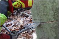 In der motormanuellen Holzernte kommen seit einigen Jahren verstärkt hydraulische Fällhilfen zum Einsatz. Der Vorteil der gewichtigen Helfer gegenüber der herkömmlichen Hammer-/Keilarbeit liegt auf der Hand: der Keilvortrieb mittels Hydraulik spart Muskelkraft und sorgt zudem für deutlich weniger gefährliche Schwingungen in der Baumkrone. Das relativ hohe Eigengewicht der Werkzeuge musste dabei bisher in Kauf genommen werden. Mit dem Fällkeil TR 30 der Fa. Forstreich Maschinenbau steht ab sofort dem Profi-Holzfäller eine mechanische Lösung mit deutlich weniger Gewicht zur Verfügung.