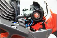 Erstmals arbeitet jetzt auch in einer leichten Husqvarna-Profisäge ein Vergaser mit AutoTune-Technologie. Die Vergasereinstellung wird hier nicht mehr mittels Stellschrauben vorgenommen, vielmehr übernehmen Magnetventile die Kraftstoffdosierung. Ein Mikroprozessor überprüft in sehr kurzen, regelmäßigen Abständen einige Motorparameter. Aufgrund dieser Parameter steuert der Prozessor die Magnetventile an, die dann für die Dauer von Sekundenbruchteilen öffnen oder schließen. Von diesem Vorgang bekommt der Motorsägenführer an sich nichts mit. Indirekt aber dann wieder doch, denn die Technik sorgt für einen zu jedem Zeitpunkt optimal eingestellten Vergaser. Egal ob kalte oder warme Temperaturen, unterschiedliche Höhenlagen, Kalt- oder Warmstart. Der Motor läuft jederzeit optimal. Folglich gibt es auch nicht mehr mehrere Schalterstellungen. Es gibt nur noch die Schalterstellung „EIN“ oder „AUS“.