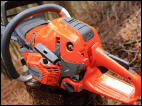 Die Säge springt nach einigen Starterzügen auch gleich an, verschluckt sich ein paar Mal und läuft dann aber problemlos. Der typische Huskyklang ist eindeutig zu erkennen. Zügig dreht die Säge hoch, kein „Abmagern“ oder „Dieseln“ ist beim Übergang und bei der Höchstdrehzahl festzustellen.