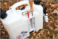 Für Sparfüchse gibt es den Doppelkanister auch in einer Standardversion ohne Werkzeugaufnahme zum Preis von 28,60 Euro. Alternativ ist die Version ohne Werkzeughalterung auch als kleiner Kanister mit einem Fassungsvermögen von 3 Litern Kraftstoff und 1,5 Litern Kettenöl zum Preis von 17,40 Euro erhältlich.