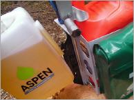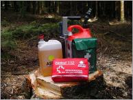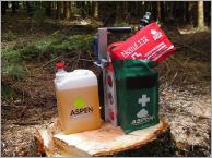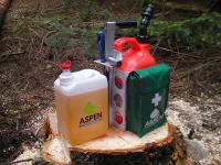 Die Zeiten, in denen Profi- und Hobbyforstwirte mit einem Reservekanister und einer mit Kettenöl gefüllten Waschmittelflasche zur Arbeit gingen, sind lange vorbei. Der Kombikanister hat diese (zum Teil illegalen) Kraft- und Schmierstoffbehälter längst abgelöst. Jetzt kommt von der Firma Aspen eine Weiterentwicklung des bekannten Transportgefäßes.