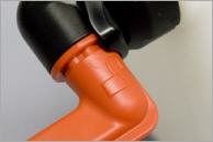 Der eingeklappte Druckknopf und Ausguss zeigen an, dass die Belüftung dicht verschlossen bzw. das Ventil verriegelt ist. Beide kann man „im Handumdrehen“ ausklappen und damit entriegeln. Der Kanister ist aber immer noch dicht verschlossen. Jetzt bringt man den Rapidon 6 in die Befüllposition. Der Tankstutzen kann bis zu ca. 45° angewinkelt werden, so dass man auch schwer zugängliche Tanköffnungen gut erreicht. Die seitliche Abflachung an diesem ermöglicht es der Luft, ungehindert aus dem Tank zu entweichen.