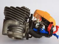 Das der Zweitaktmotor ideal für den Einsatz in Motorsägen ist, wir bis heute niemand ernsthaft bestreiten wollen. Neben den vielen Vorteilen wie leichte Bauweise, lageunabhängiger Betrieb und gutes Leistungs-/Gewichtsverhältnis hat diese Technik aber auch Nachteile. Die so genannten Spülverluste (gemeint ist ein Anteil von ca. 20-25% Frischgase im Abgas) sind hier wohl als größtes Problem anzusehen, das so alt ist wie das Zweitaktprinzip an sich. Nach dem Arbeitstakt werden die heißen Abgase durch Frischgase aus dem Brennraum in den Auspuff gespült. Um einen möglichst hohen Füllgrad mit Frischgasen zu erreichen, wird quasi der Brennraum „überspült“. Systembedingt entweichen bei diesem Vorgang auch ca. 25% der Frischgase unverbrannt in den Auspuff.