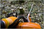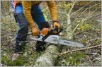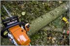 Wir hatten gehofft, dass der Laser in 10-15 Metern noch erkennbar ist. Denn so wäre der Punkt, an dem die Krone auftrifft, deutlicher zu identifizieren gewesen. Doch in diesem Punkt werden wird eines besseren belehrt. Zwar ist der Laserstrahl eine zusätzliche Hilfe zur Visierlinie an der Anwerfvorrichtung der Motorsäge, aber die Lichtleistung ist nicht ausreichend, um die genaue Fällrichtung bzw. den genauen Aufschlagpunkt der Krone sichtbar zu machen. Aus der Sicht eines Praktikers wäre das aber wünschenswert. Zudem gibt es im Baugewerbe Laserpointer, die von der optischen Leistung durchaus den hier geforderten Bereich gut sichtbar anvisieren können und überdies nicht größer als ein Kugelschreiber sind.