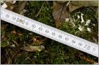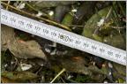 Beim Fällen von mittelstarkem Eschenholz wollen wir die Praxistauglichkeit des Lasers testen. Der Boden ist jetzt im Winter mit den Resten der Vegetation und dem abgefallenen Laub relativ farblos. Wir halten die Säge in der für die Fallkerbanlage typischen Position und drehen die Laseroptik so lange Richtung Boden, bis das ca. 60-80 cm vor uns der Lichtstrahl gut zu erkennen ist. Parallel zum Laserstrahl legen wir einen Zollstock in die geplante Fällrichtung, um zu messen, bis wohin man den Strahl noch gut erkennen kann. Bei ca. 1,8 Metern wird die Sichtbarkeit des Strahls durch die Vegetation und die Laubstreu schon soweit reduziert, dass ein eindeutiges Erkennen kaum noch möglich ist.