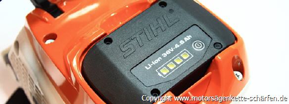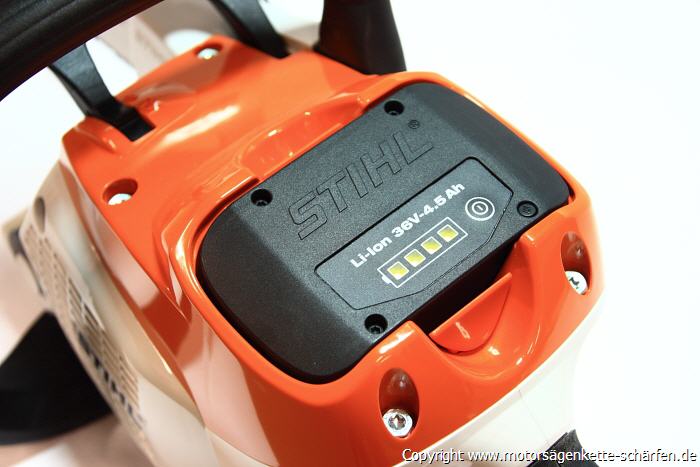 Die Akkusäge MSA 160 C-BQ ist als „nackte“ Säge, also ohne Akku zum Preis von 349,- Euro lieferbar. Dieses Angebot richtet sich vorwiegend an Besitzer von Akkugeräten aus dem Hause Stihl, da der Energiespeicher mit allen akkubetriebenen Geräten kompatibel ist. Wer also bereits Besitzer eines solchen Gerätes ist, kann in diesem Fall den vorhandenen Akku in die Säge einsetzen und lossägen.