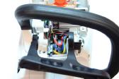 Nach einer Ladepause geht es weiter! Die Säge wird eingespannt, der Kettenöltank noch mal aufgefüllt und der Gashebel anschließend arretiert. Nach 10 Minuten machen wir eine Pause, um die Säge kurz abkühlen zu lassen. Da der Motor aber kaum warm und auch noch genug Kettenöl im Tank ist, geht es im Dauerlauf weiter. Am Ende arbeitet die Säge mit einem voll aufgeladenen Akku 33 Minuten und 20 Sekunden auf Hochtouren. Respekt! Soviel hatten wir nicht erwartet.