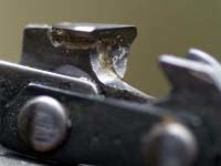 Beide Ketten wurden anschließend auf Beschädigungen untersucht. Auch hier zeigt sich die gute Qualität der Picco Duro Kette. Es waren kaum Beschädigungen am Schneidzahn festzustellen. Ganz anders sah allerdings die Standardkette aus. Dach- und Brustschneide waren doch relativ stark beschädigt.