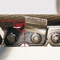 Öfter schärften, weniger Material abtragen! Weißt die Dachschneide nach vielen Schärfvorgängen eine Länge von 4mm auf, ist die Verschleißgrenze erreicht und die Kette sollte gegen eine neue gewechselt werden.