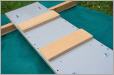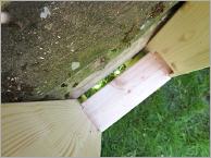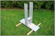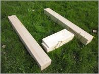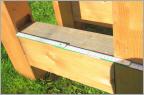 Die beiden kurzen Holzplatten, die auf die Grundplatte aufgeschraubt werden, sollen verhindern, dass die Säge später beim Durchtrennen der Hölzer nach unten hin Kontakt mit der Stahlblechkonstruktion bekommt. Der Konstrukteur hat hier sehr weit mitgedacht. Unserer Ansicht nach ist es durch den großen Abstand zur Grundplatte hin selbst ungeübten Motorsägenführern möglich, dass Holz ohne die Gefahr einer Berührung der Sägenkette mit den Metallteilen zu durchtrennen. Aber gut, dass für alle Fälle die Holzplatten da sind.