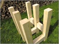 Der Stockinger Scheitholz-Sägebock wird komplett aus Fichten-Leimholz gefertigt und kommt ohne Schrauben oder sonstigen Metallteilen für die Montage aus. Mit CNC-gefrästen, hochwertigen Schwalbenschwanz-Verbindungen kann der aus 11 Einzelteilen bestehende Sägebock in 3-4 Minuten zusammengebaut werden. Auch dieser Scheitholz-Sägebock ermöglicht durch seine Konstruktion die Herstellung von 33 cm langen Scheithölzern. Eine Variante für kürzere Holzlängen wird nicht angeboten.
