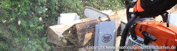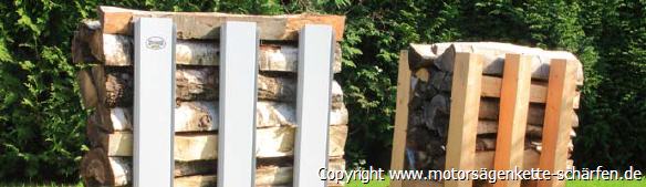 Deutlich besser beraten ist der Brennholzmacher mit einem Scheitholz-Sägebock. In diese praktischen Helfer werden gleich mehrere Meterstücke auf einmal eingelegt und mit einem Serienschnitt zerteilt. Laut Hersteller erfolgt die Arbeit mit deren Produkten schneller und einfacher als mit herkömmlichen Holzsägeböcken. Zudem werben die Hersteller mit kürzeren Motorsägenlaufzeiten.