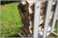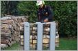 Für den Test haben wir gut abgelagertes Buchen-Scheitholz (gespalten und 1-Meter lang) ausgewählt. Mit dem Sappi bestücken wir den Speedbock so, dass die Hölzer überwiegend mit der Spaltfläche nach außen, also gegen die Rungen, gelagert werden. Wir beginnen in der untersten Lage mit relativ starken Spaltstücken. In der Mitte lagern wir eher dünne bzw. ungespaltene Hölzer, die nach oben hin wieder mit gröberen Stücken abgedeckt werden.