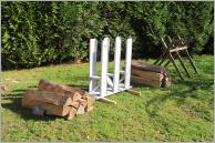Herbstzeit - jetzt findet man in Gartenzentren und Baumärkten allerorts wieder Ausstellungen zum Thema „Brennholz machen“. Äxte, Bekleidung und Motorsägen werden auf klappbaren, so genannten Holzsägeböcken, ausgestellt. Zu Hause kommt dann meistens die Ernüchterung, der neue Bock wackelt nicht selten unter dem hohen Gewicht der Brennholzscheite. Konstruktionsbedingt befinden sich die Holzbauteile nahe am zu sägenden Holz, was beim versehentlichen Kontakt mit der Sägekette den schnellen Verschleiß des Sägebocks zur Folge hat. Ganz zu schweigen von der mühseligen Arbeit und den langen Leerlaufzeiten der Motorsäge, wenn der Sägebock be- und entladen wird.