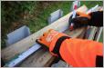 Für uns steht daher an erster Stelle der deutliche Zugewinn in der Arbeitssicherheit. So regelt die "Unfallverhütungsvorschrift Forst", dass im Schwenkradius von 2 Metern um den Motorsägenführer herum sich keine weitere Person aufhalten darf. Wir halten diese "Vorschrift" für vernünftig, auch wenn sie für den privaten Brennholzselbstwerber auf dem privaten Grundstück nicht verbindlich ist. Im Umkehrschluss bedeutet das dann aber, dass ein Helfer, der das Holz beim Sägen festhält, zwangsläufig im Gefahrenbereich der Motorsäge steht. Das spricht eindeutig gegen dieses Arbeitsverfahren und gleichzeitig für den Einsatz der hier vorgestellten Produkte.