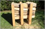 Nach etwas mehr wie einer Minute sind die 10 jeweils 1-Meter langen Buchenholzstücke auf handliche 33 cm eingeschnitten. Die fertigen Ofenholzlängen liegen fest zwischen den Rungen und können nun bequem aus dem Speedbock entnommen und weiterverarbeitet bzw. abtransportiert werden. In unserem Test ergab eine Füllung mit jeweils 10 - 12 Holzstücken nach dem Einschneiden immer genau eine Schubkarre voll mit fertigem Ofenholz. Mit zwei Personen und zwei Schubkarren kamen wir so auf eine Leistung von über 2 Raummetern ofenfertiges Holz pro Arbeitsstunde.
