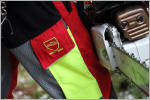 Achten Sie beim Kauf von Schnittschutzbekleidung auf das CE-Zeichen und das Motorsägenpiktogramm auf den Produktbegleitinformationen. Oftmals findet man das CE-Zeichen innen in der Hose auf einem angenähten Stoffschildchen. Das Motorsägenpiktogramm hingegen soll von außen auf der Hose gut erkennbar sein und ist bei vielen Modellen im Bereich der Zollstocktasche aufgebracht.