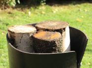Durch die flexible Bauweise kann die Auffangvorrichtung platzsparend im Auto transportiert werden. Das ist besonders für alle diejenigen ein Vorteil, die direkt im Wald fertiges Scheitholz herstellen wollen. Ebenso ermöglicht diese Bauweise auch die Verwendung von unterschiedlichen Hackklotzdimensionen. So kann man sich bei Bedarf vor Ort ein geeignetes Stammstück rausschneiden und die Auffangvorrichtung darauf montieren.